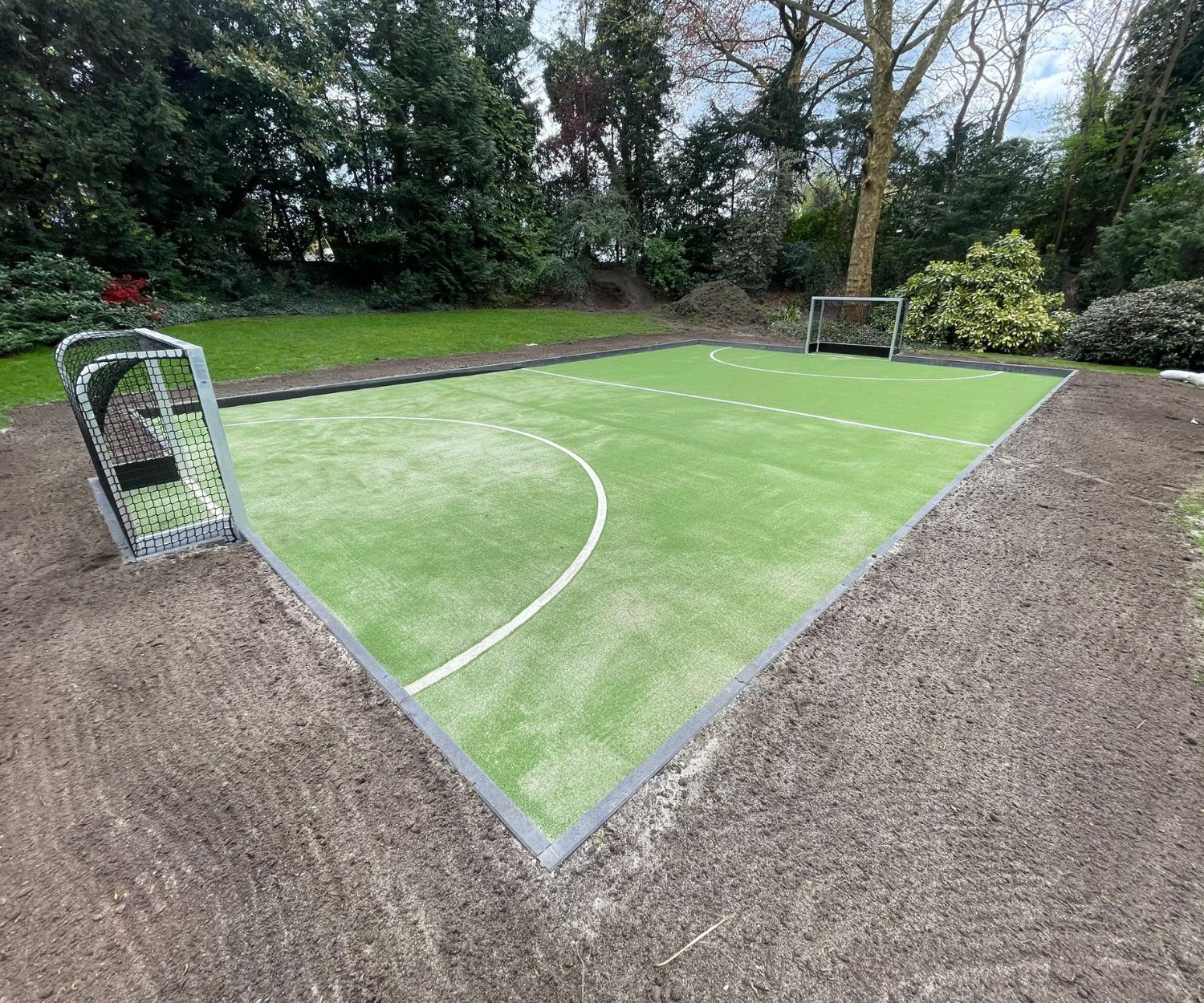 Rund um das Feld empfehlen wir eine Stoßkante anzubringen, zum Beispiel aus Betonrandsteinen. So bleibt der Ball während des Spiels sauber im Feld.